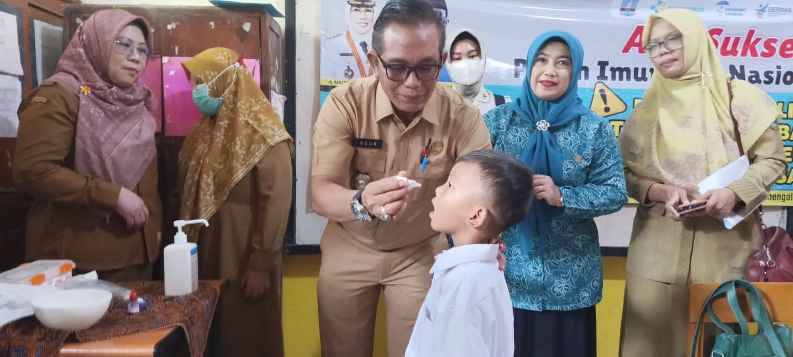 Mitra Banten News | SERANG – Pekan Imunisasi Nasional (PIN) Polio dilakukan secara serentak di seluruh Indonesia, mulai dari tanggal 23 Juli (hari ini/red) hingga 29 Juli untuk putaran pertama dan tanggal 6 Agustus hingga 12 Agustus 2024 untuk putaran kedua. Sebagai langkah untuk turut menyukseskan Pekan Imunisasi Nasional Polio di Kecamatan Ciomas Kabupaten Serang, kepala Puskesmas Cimas, Drg. Chris Dewanto, Ketua TP PKK Kecamatan Ciomas Hj. Dian Rahmawati, Camat Kecamatn Ciomas, H. Ugun Gurmilang, turun langsung untuk melakukan imunisasi yang bertempat di SDN Ciomas 1.
